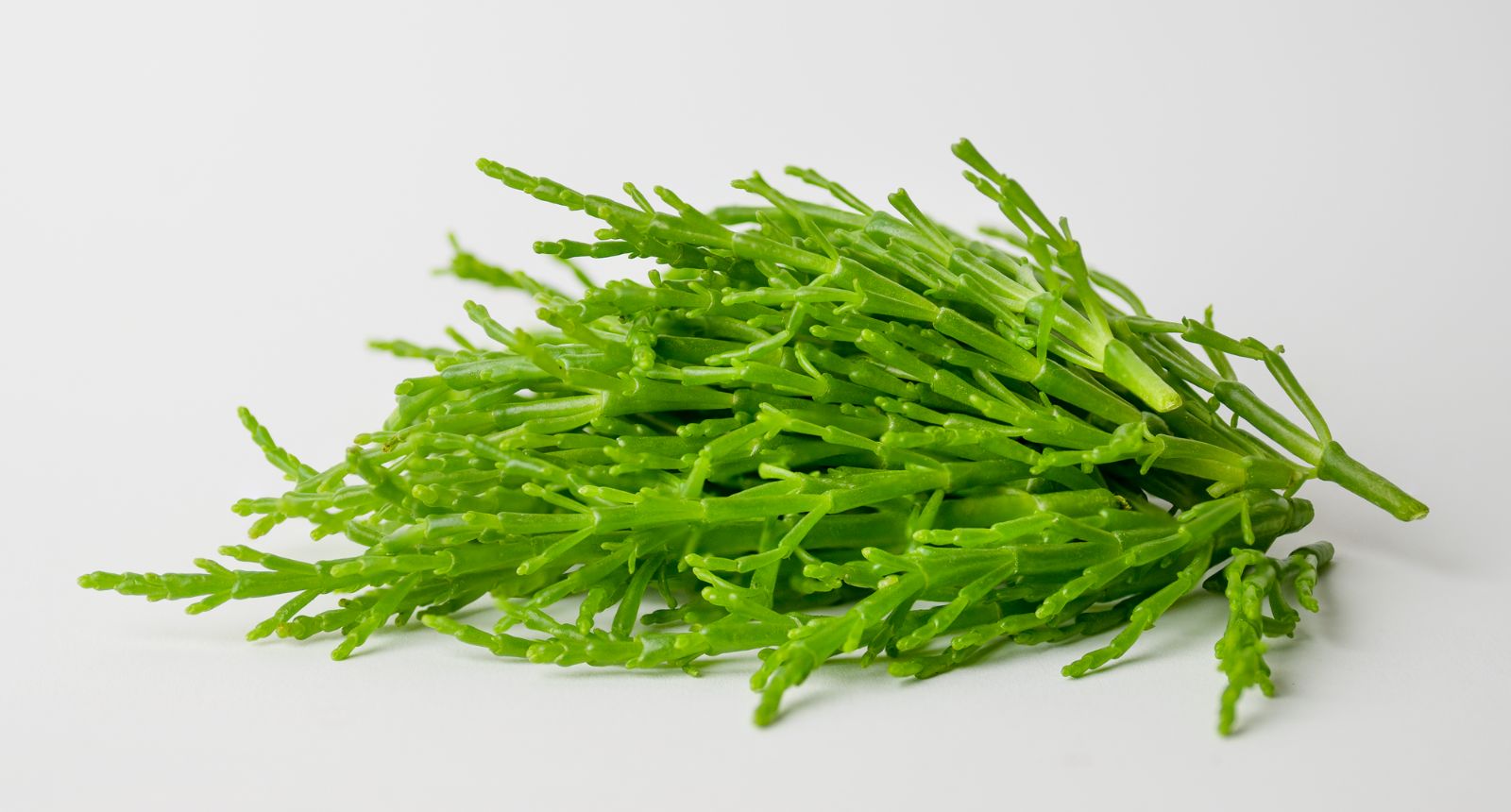 Die grüne blattlose Salzpflanze zeichnet sich durch ihre knackige Textur und ihren salzigen Geschmack aus.